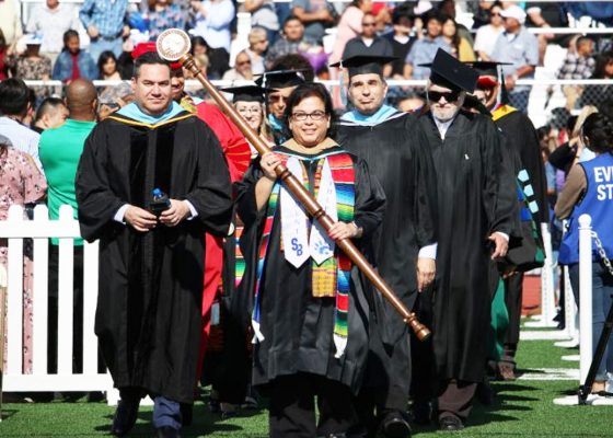 Clad in black gowns and a variety of colorful stoles and tassels, the students were led onto Henley Field by President Diana Z. Rodriguez. She welcomed the thousands of students and family members that filled the stadium, acknowledging the graduate’s achievements and congratulating them on years of dedication and hard work.