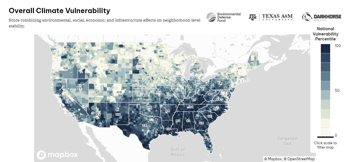 That’s where the Climate Vulnerability Index may be able to help. The tool is designed not only to show where the risks lie, but to help steer new investment in solutions. The Biden administration’s Inflation Reduction Act has made available “a historic level of funding” to build toward climate justice and equity,