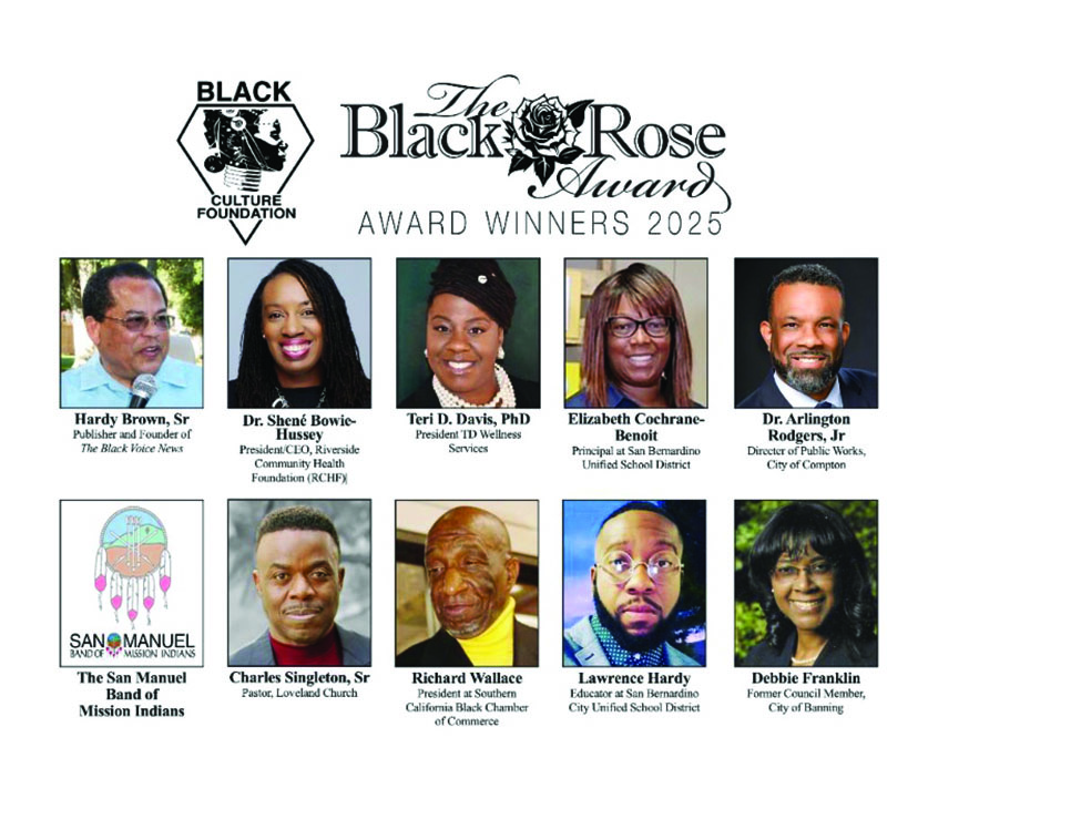 The 32nd Annual Black Rose Awards will honor 10 outstanding community leaders with lifetime achievement honors called Black Rose Awards. Awardees, including Dr. Hardy Brown, Sr., will be honored as Humanitarian of the Year, and the San Manuel Band Of Mission Indians will receive the Jim King Founders Award.