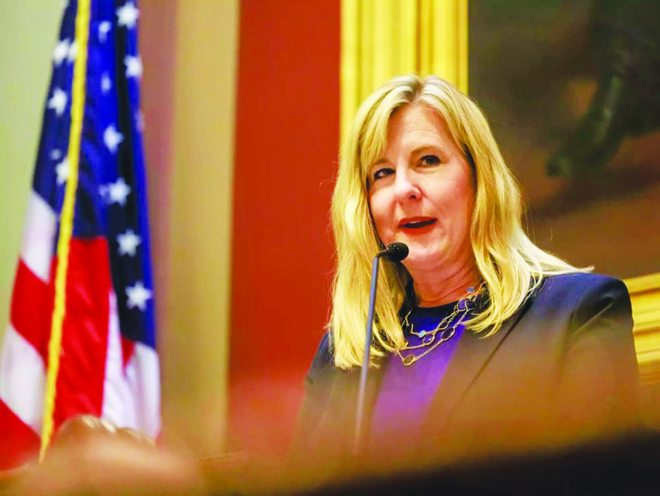 Speaker of the House Melissa Hortman addresses the house floor after being re-elected during the first day of the 2023 legislative session.